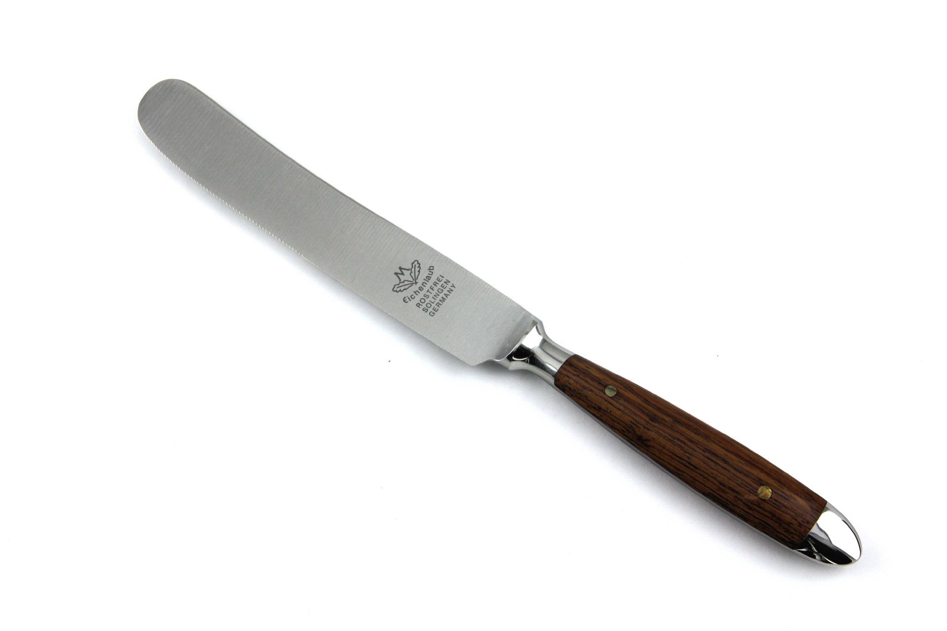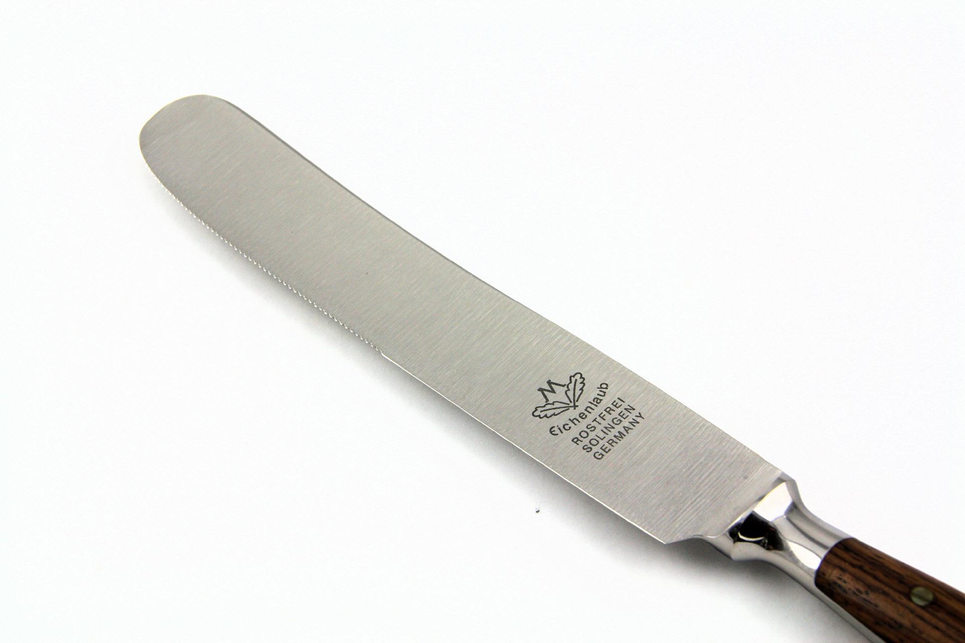 Die "uraltdeutsche" Klingenform ist die Ursprungsform des Backenbestecks. Diese breite Klingenart gibt es seit über 130 Jahren. Sie passt sehr gut zum traditionellen Stil des "Eichenlaub"-Bestecks.