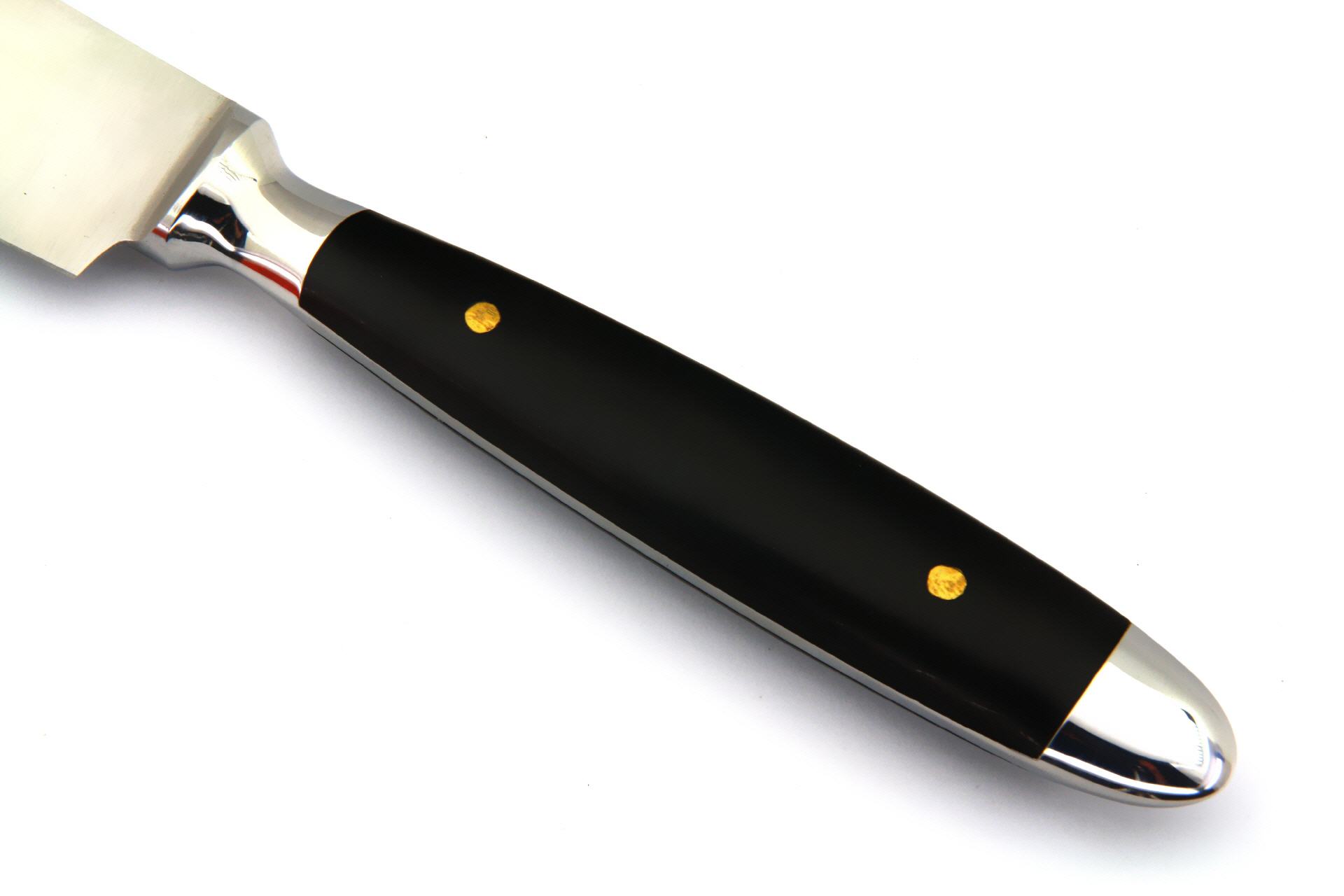 Griff: Makassar-Ebenholz Nieten: Messing Material: rostfrei Gesamtgewicht ca. 300g |