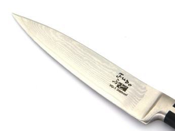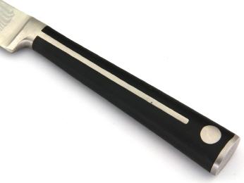 Spitzenqualität für Profi - und Hobbyköche mit 33 Lagen rostfreiem Damaststahl. Seit über 1000 Jahren werden in Fernost hochwertige Klingen geschmiedet. Noch heute setzen die Meister bei Fudo diese alte Tradition der Klingenfertigung fort. Mit 33 Lagen gehört diese Fudo Serie zu den Spitzenerzeugnissen am Markt. Als Griffmaterial wird der hygienisch unbedenkliche und äußerst robuste Kunststoff POM verwendet. Dadurch ist diese Messerserie auch in der Gastronomie einsetzbar. Der Kern der Klinge besteht aus VG 1 Stahl mit einer Rockwellhärte von ca. 60 Grad. Auf beiden Seiten sind jeweils 16 stabilisierende Lagen Damaststahl aufgeschmiedet. Eine Damaststahl-Klinge bietet höchste Schneidleistung bei größtmöglicher Flexibilität.