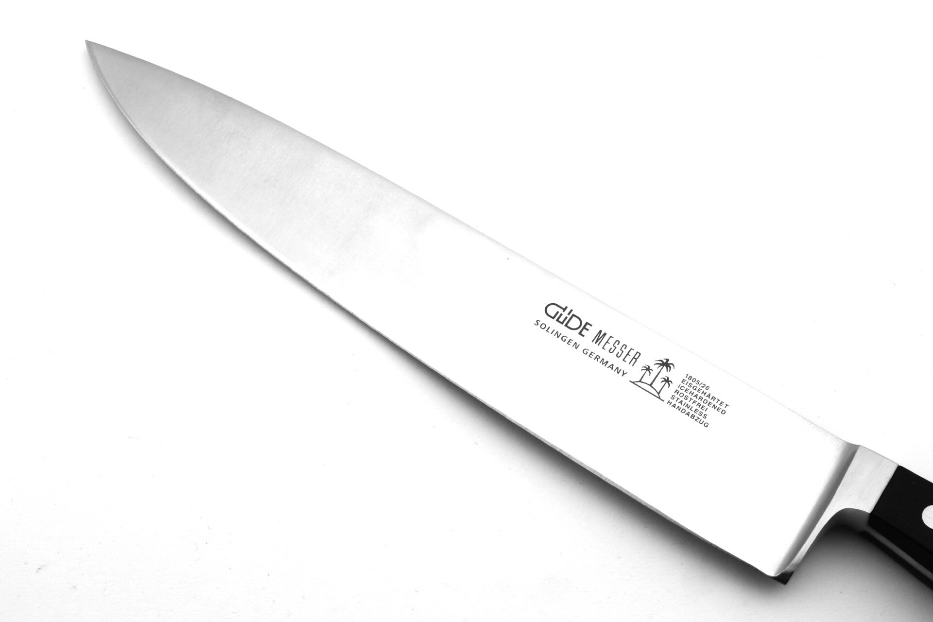 Aus einem Stück handgeschmiedete Klinge aus Chrom-Vanadium-Molybdän Messerstahl. Weiterverarbeitung in über 30 manuellen Arbeitsgängen. Der feinpolierte Griff besteht aus robustem und pflegeleichtem Hostaform und ist spülmaschinengeeignet. Die Klinge ist rostfrei, eisgehärtet und hangeschärft. Die Messer der Alpha-Serie erfüllen die Anforderungen der Richtlinien an Messer für den Einsatz in der Gastronomie und bieten innerhalb der Güde-Serien die größte Modellvielfalt.