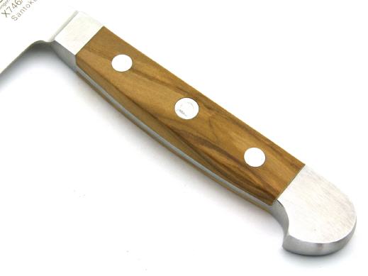 Die Klingen sind handgeschmiedet und bestehen aus einem Stück Chrom-Vanadium-Molybdän Messerstahl. Die Weiterverarbeitung erfolgt in über 40 manuellen Arbeitsgängen. Die Griffschalen der GÜDE Alpha Olive Serie bestehen aus bis zu 500 Jahre altem und ausgesuchtem Olivenholz, welches sehr hart, witterungsfest, stark gemasert und dadurch besonders elegant ist. Die Klinge ist rostfrei, eisgehärtet und handgeschärft – der Griff ist nicht spülmaschinengeeignet. Die Messer der Alpha-Serie erkennt man durch den geschmiedeten Knauf am Griffende - dem sogenannten Doppelkopf. Neben der Optik verbessert dieser vor allem auch das Handling und die Balance.