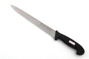 - Klinge 25cm aus rostfreiem Spezialmesserstahl - Gesamtlänge: 39cm - Klingenstärke 1,5mm - Gewicht: 120g - eisgehärtet - handgeschärft - Griffmaterial: PPN schwarz - spülmaschinenfest