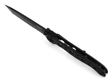 Mit geschwärzter Tanto-Klinge und partiellem Wellenschliff. Bewährtes Messerdesign von Ed Carson. Simpel, strapazierfähig und bezahlbar. Die Klingen werden aus 8Cr13MoV Stahl gefertigt und die Griffschalen aus unzerstörbarem Edelstahl, mit einem sehr ansprechendem Black-Oxide Finish. Die Klingen arretieren über den Framelock und verfügen über den Carson- Flipper. Ein Messer für den echten, harten Einsatz, wenn Performance gefragt ist.